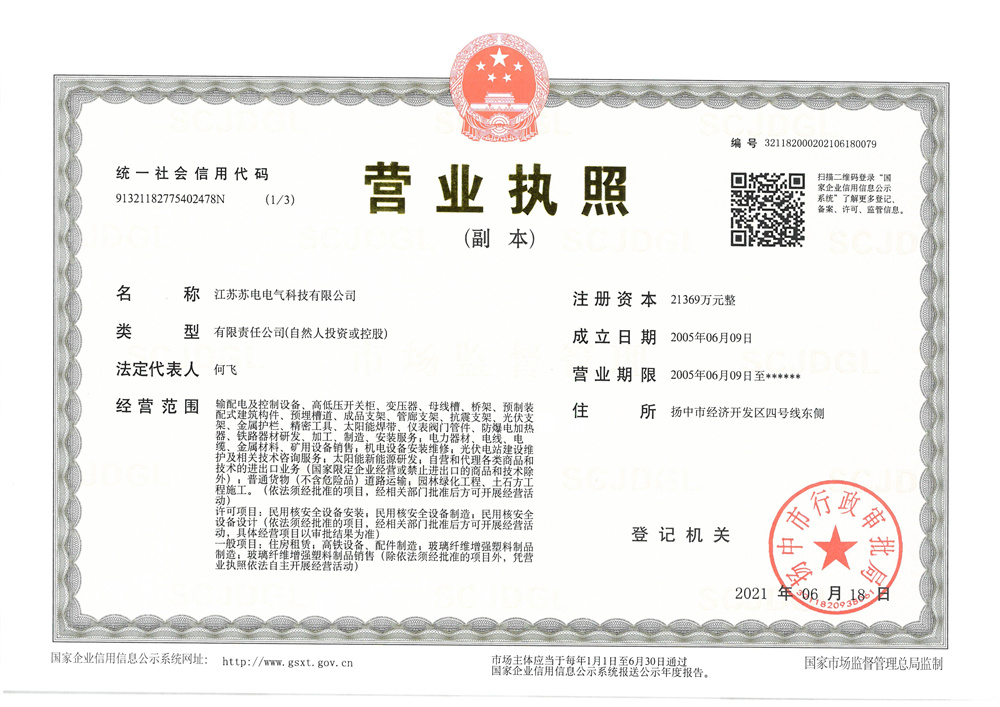 江蘇蘇電電氣科技有限公司是一家集制造、經(jīng)營(yíng)、服務(wù)于一體的綜合性企業(yè)。成立于2005年6月9日,注冊(cè)資金21369萬(wàn)元,現(xiàn)有職工186人,其中高級(jí)工程師3人 ,工程師15人,各類專業(yè)技術(shù)人員28人,年銷售額3億多,是揚(yáng)中市開(kāi)發(fā)區(qū)三十強(qiáng)企業(yè)之一。 公司立足于電器領(lǐng)域,形成了多元化的發(fā)展格局。憑借優(yōu)秀的團(tuán)隊(duì)、精良的設(shè)備、優(yōu)勢(shì)的技術(shù)和高效的管理,專業(yè)生產(chǎn)高低壓開(kāi)關(guān)柜、母線槽、抗震支架、管廊支架、成品支架、光伏支架、電纜橋架等。在供配電、大型建筑、市政工程、光伏發(fā)電等領(lǐng)域享有較有高的聲譽(yù)。 公司始終秉承“求實(shí)、創(chuàng)新、和諧、共贏”的發(fā)展主題,進(jìn)行了一系列變革,優(yōu)化資源配置,搭建了高效發(fā)展的平臺(tái)。公司較早地采用了CAD電腦輔助系統(tǒng),擁有數(shù)控加工中心。產(chǎn)品被青島新機(jī)場(chǎng)、江蘇省電力公司、湖北省電... ...
